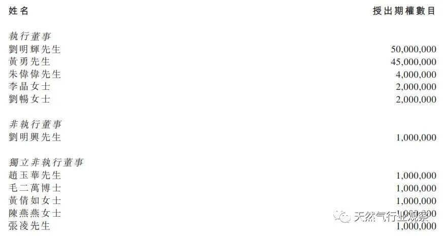 除了給董事的期權(quán)外,中燃還給合格雇員授出1.597億份期權(quán)。