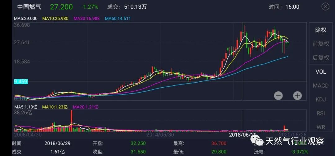 根據(jù)公告內(nèi)容,期權(quán)的行使價為23.8元/股,有效期為2020年4月23日至2026年12月31日。而目前,中燃的股價為27.2元,之前中燃股價曾高達36.7元。