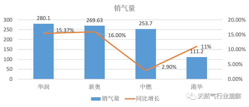 1、年度銷氣量253.7億方,被新奧華潤反超