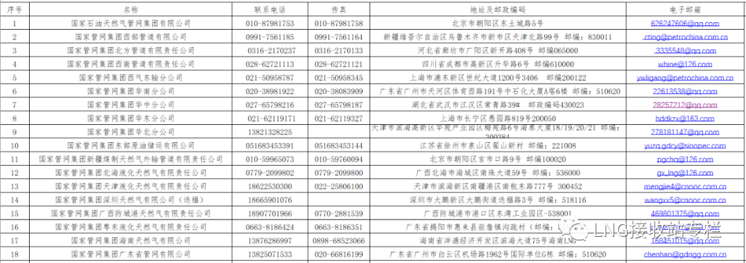 國(guó)家管網(wǎng)集團(tuán)及直屬油氣管網(wǎng)設(shè)施運(yùn)營(yíng)企業(yè)名稱、聯(lián)系電話、傳真、地址及郵箱、電子郵件、信息公開平臺(tái)等信息,詳見油氣管網(wǎng)設(shè)施運(yùn)營(yíng)企業(yè)基本情況表。