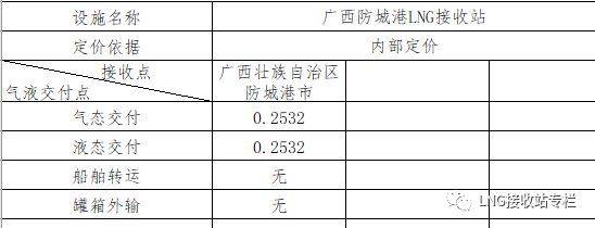 LNG接收站服務(wù)價(jià)格,詳見LNG接收站價(jià)格(含增值稅)。