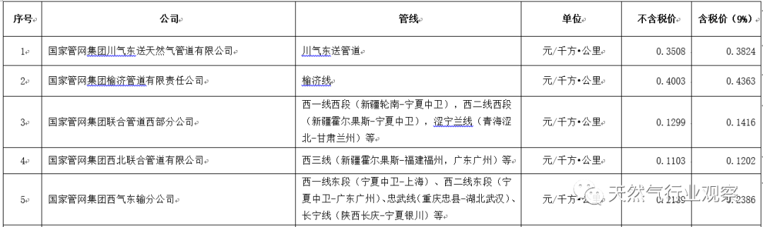 三、管網(wǎng)價(jià)格標(biāo)準(zhǔn)