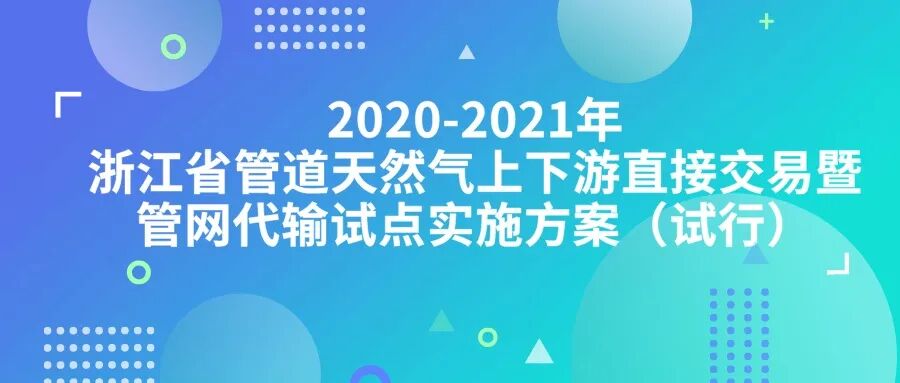 日前,浙江省發(fā)展改革委(能源局)印發(fā)《2020-2021年浙江省管道天然氣上下游直接交易暨管網(wǎng)代輸試點(diǎn)實(shí)施方案(試行)》,啟動(dòng)管道天然氣上下游直接交易,并提出2020年全省爭(zhēng)取管道天然氣上下游直接交易規(guī)模30億立方米以上,降低成本3億元以上目標(biāo)。